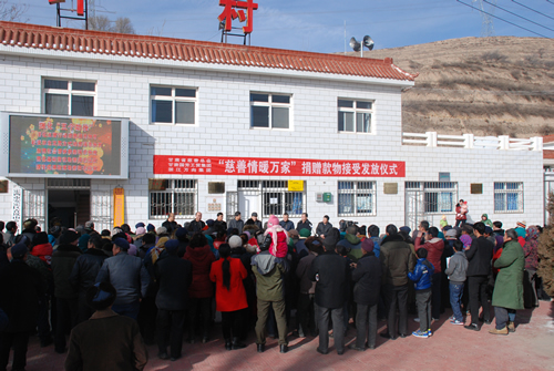 2016年1月21日由甘肅省慈善總會、甘肅國芳工貿(mào)集團聯(lián)合開展的“慈善情暖萬家”捐贈物資接受發(fā)放儀式在青嵐山鄉(xiāng)大坪村隆重舉行。省慈善總會常務(wù)副會長張瑞堂同志、副會長張忠健同志,甘肅國芳工貿(mào)集團副總經(jīng)理白海源先生,定西市政府副市長李斌同志及市區(qū)民政局、青嵐山鄉(xiāng)政府主要負責同志參加了儀式。省慈善總會聯(lián)合國芳工貿(mào)集團籌措價值120萬元的衣物5100多件,資助青嵐山鄉(xiāng)3000多戶困難群眾,幫助他們解決穿衣方面的困難。