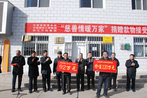 近年來,甘肅國芳工貿(mào)集團在大力發(fā)展的同時,始終沒有忘記對我區(qū)貧困群體的關(guān)愛和幫助,至今已累計對外捐贈現(xiàn)金物資達到5000余萬元。有力地支援了我區(qū)救災工作和各項公益事業(yè)。這些善事、好事、實事,極大地彰顯了中華民族扶貧濟困、大愛無疆的傳統(tǒng)美德,體現(xiàn)了成功企業(yè)家的社會責任。