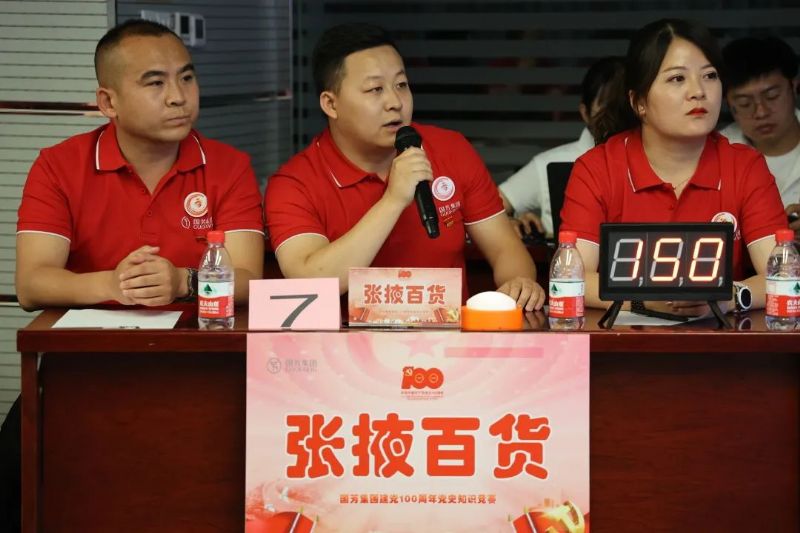 國芳集團黨委書記張芳萍同志指出,黨史知識競賽既是一次黨性考驗、能力提升,又是一次心靈洗禮、加油充電,更是一次理想信念的強化。希望同志們認真對待這次競賽,以此次競賽為契機,認真學習黨史,真正做到知史愛黨、知史愛國、知史愛崗。